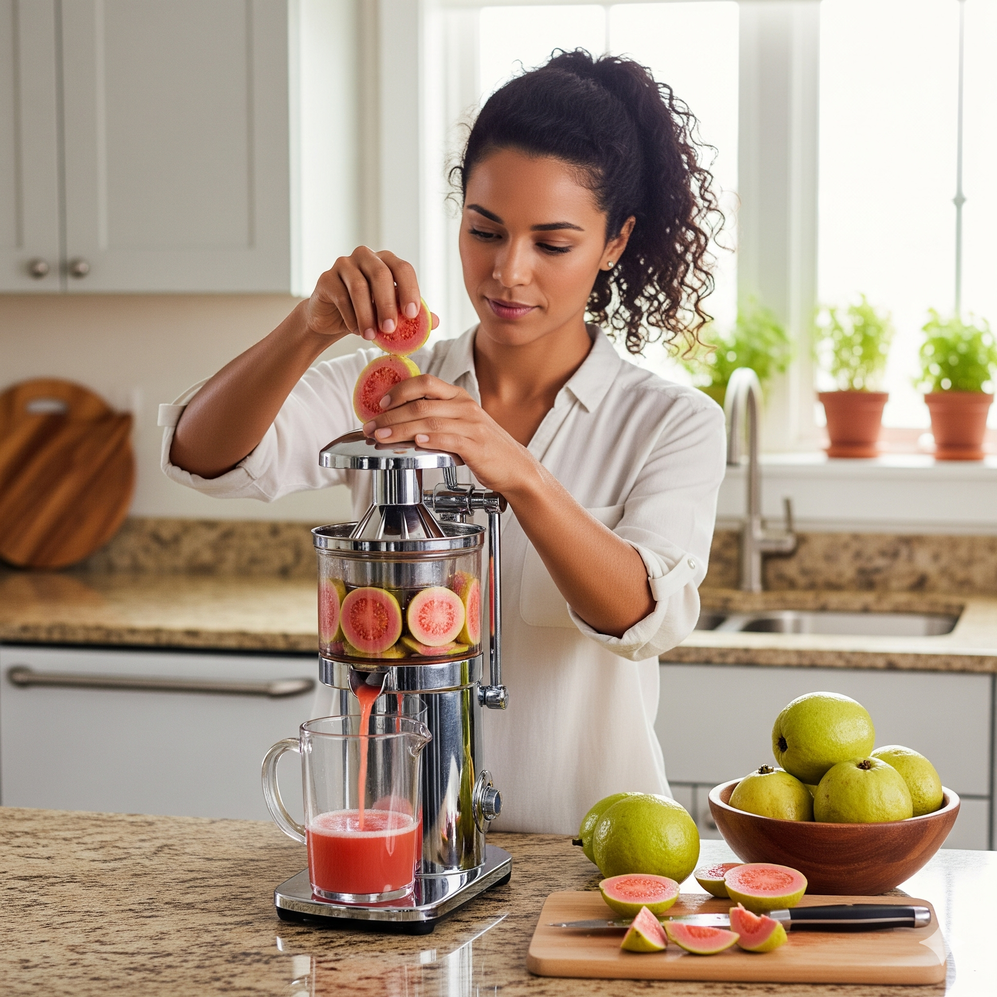 Nước ép ổi dễ làm bằng máy ép trái cây.