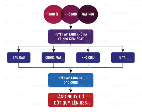 Trong giấc ngủ, tim và hệ mạch được nghỉ ngơi, giúp huyết áp ổn định. Khi ngủ ít, ngủ chập chờn, hoặc bị thiếu ngủ kéo dài, tim phải hoạt động liên tục và bị quá tải, dẫn tới rối loạn điều hòa huyết áp. Thiếu ngủ kích thích hệ thần kinh giao cảm (hệ thần kinh căng thẳng), làm cơ thể tiết ra các hormone stress, gây co mạch và khiến huyết áp tăng cao bất thường (thậm chí tăng huyết áp kịch phát). Tình trạng mất ngủ kéo dài này khiến bệnh THA diễn tiến nhanh hơn, gia tăng nguy cơ biến chứng tim mạch nghiêm trọng.