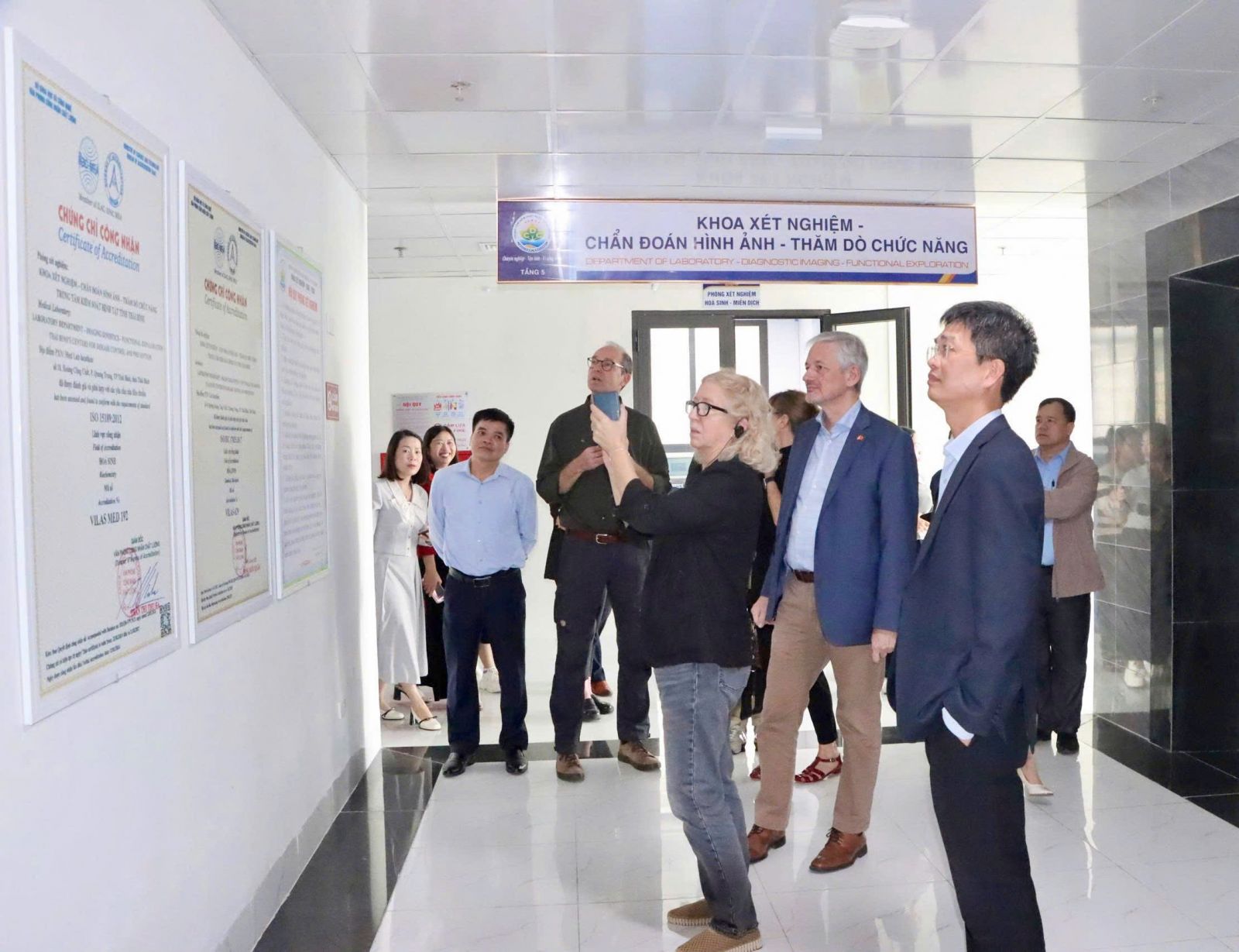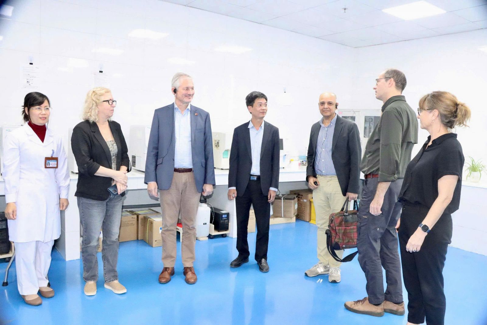 Trong khuôn khổ buổi làm việc, Đoàn chuyên gia Đan Mạch đã trực tiếp tham quan hệ thống các khoa, phòng chức năng và khu vực xét nghiệm của CDC Hưng Yên.