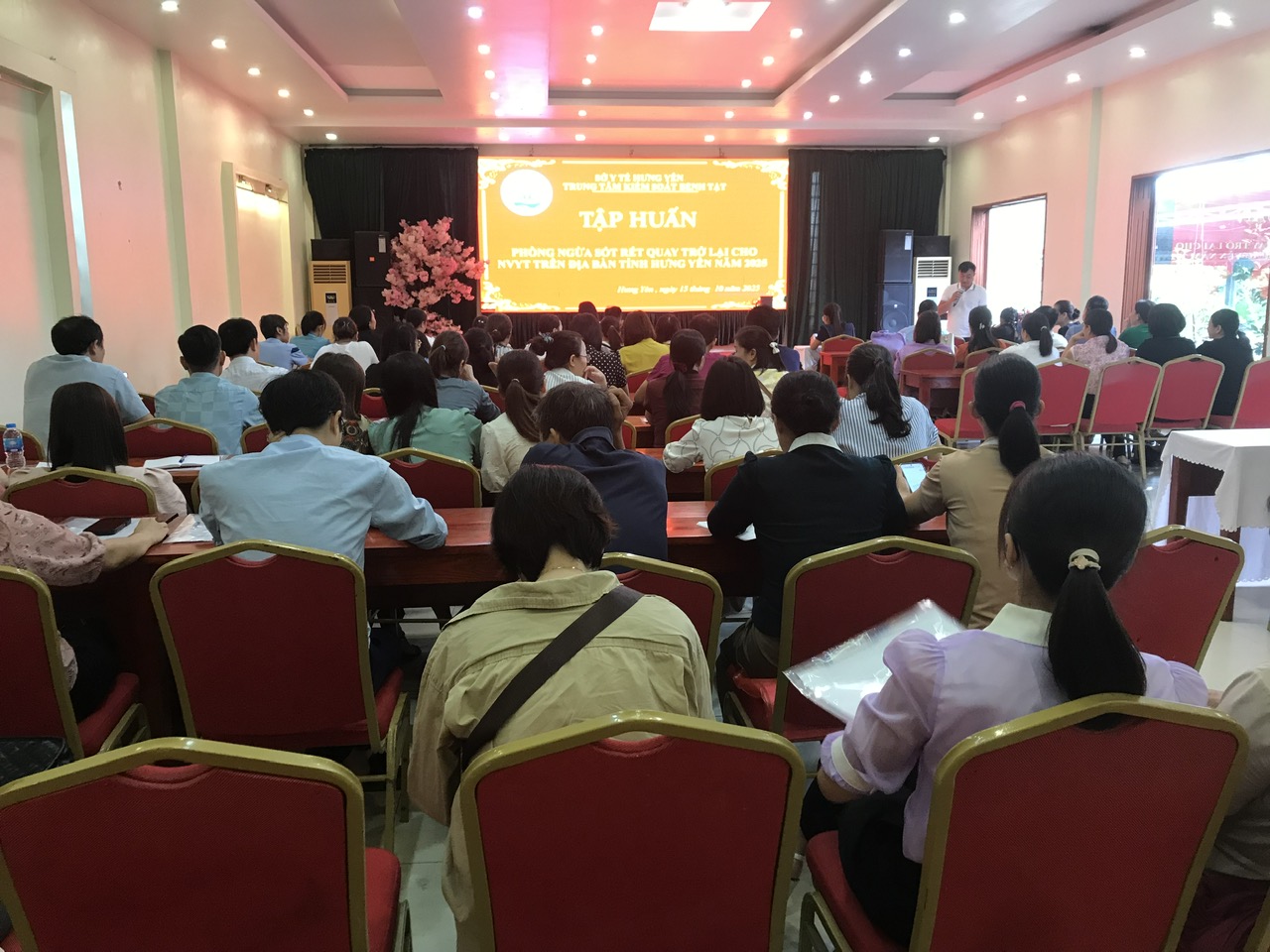Nhằm củng cố và nắm vững kiến thức về bệnh và các biện pháp phòng ngừa sốt rét quay trở lại cho cán bộ y tế cơ sở; từ ngày 15-24/10/2025, Trung tâm Kiểm soát bệnh tật Hưng Yên tổ chức 04 lớp tập huấn về chuyên môn cho hơn 340 cán bộ làm công tác phòng, chống sốt rét tại các Trung tâm y tế khu vực và trạm y tế trên địa bàn phía Bắc tỉnh.