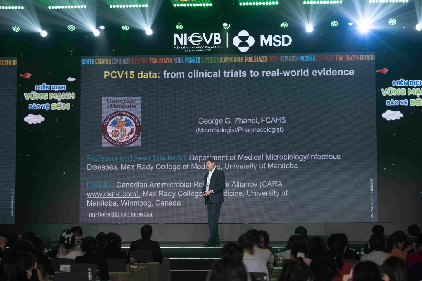 Trình bày tại hội nghị, GS. TS. George G. Zhanel, Giáo sư và Phó Trưởng khoa Vi sinh học Y khoa và Bệnh truyền nhiễm, Giám đốc Liên minh Kháng thuốc Kháng sinh Canada (CARA), Trường Y Max Rady, Khoa Khoa học Sức khỏe Rady, Đại học Manitoba, Winnipeg, Canada, cho biết: "Ở trẻ em, WHO khuyến nghị cần đánh giá không chỉ số lượng týp huyết thanh mà còn khả năng sinh miễn dịch, vì có những bằng chứng đáng tin cậy về việc giảm nồng độ kháng thể khi thêm quá nhiều týp huyết thanh vào vắc xin dành cho đối tượng trẻ em. Vắc xin phế cầu 15 chủng của MSD phù hợp cho cả trẻ sinh non, đã được chứng minh qua nhiều nghiên cứu và sử dụng rộng rãi tại hơn 47 khu vực trên toàn thế giới."