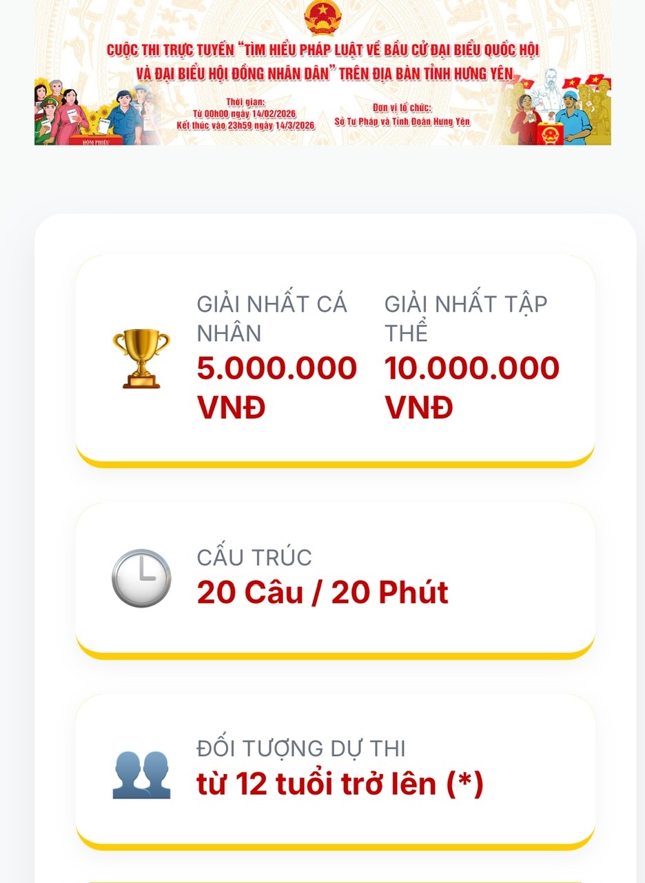 Cuộc thi trực tuyến “Tìm hiểu pháp luật về bầu cử đại biểu Quốc hội và đại biểu Hội đồng nhân dân” ...