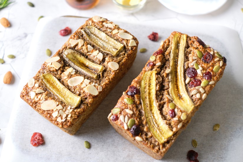 Bánh yến mạch chuối: Chỉ gồm yến mạch cán dẹt trộn với chuối chín nghiền và hạt chia, nướng lên là có món bánh thơm phức không cần thêm đường.