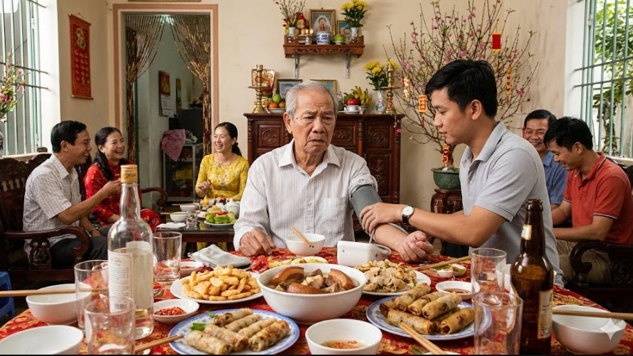 Dịp Tết, nhiều người cao tuổi bất ngờ tăng huyết áp dù vẫn uống thuốc. Chuyên gia cảnh báo chế độ ăn, thời tiết lạnh, rượu bia và thay đổi sinh hoạt là nguyên nhân chính.