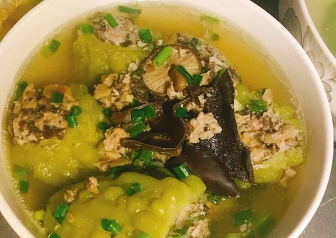 Cách làm: Mướp đắng bỏ ruột, nhồi thịt, nấu canh.