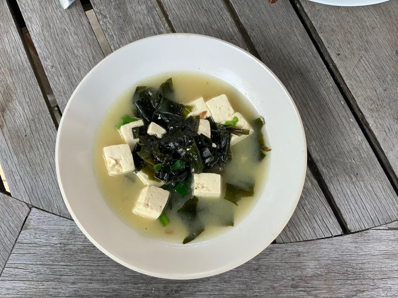 Cách làm: Ngâm mềm rong biển, nấu với nước, cho đậu phụ vào, nêm nhẹ.