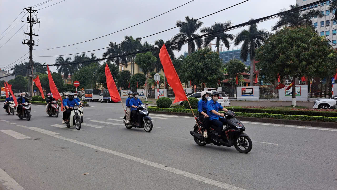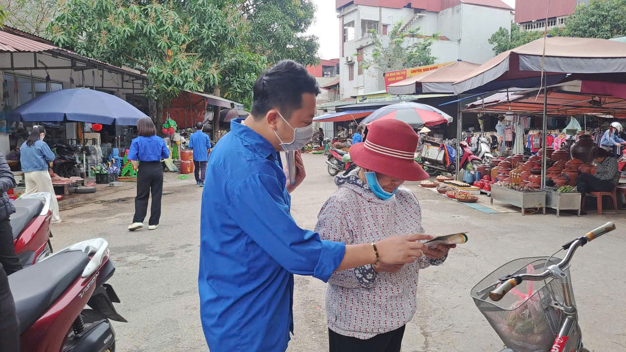 Đoàn thanh niên Bệnh viện Phổi Hưng Yên phát tờ rơi cho người dân