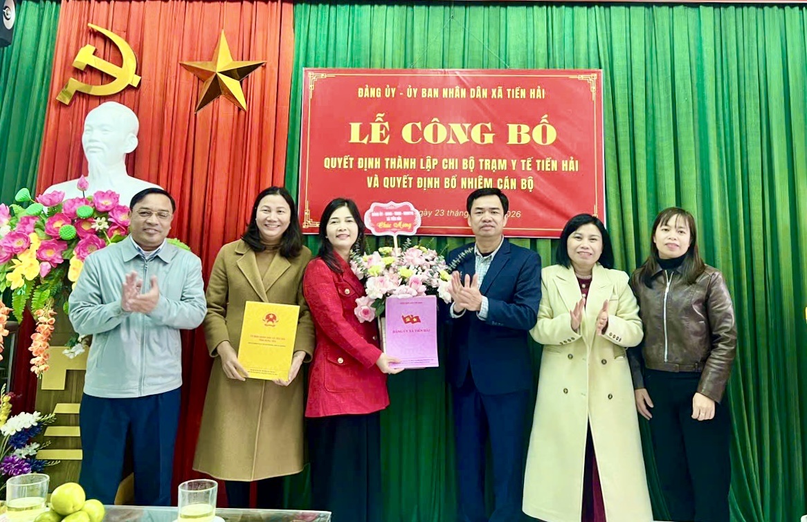 Sáng 23/1/2026, Đảng uỷ xã Tiền Hải (Hưng Yên) tổ chức Hội nghị công bố quyết định thành lập Chi bộ Trạm Y tế xã Tiền Hải và các quyết định về công tác cán bộ. Đây là bước quan trọng trong việc kiện toàn tổ chức Đảng, nâng cao hiệu quả lãnh đạo, chỉ đạo đối với hoạt động y tế cơ sở trên địa bàn.
