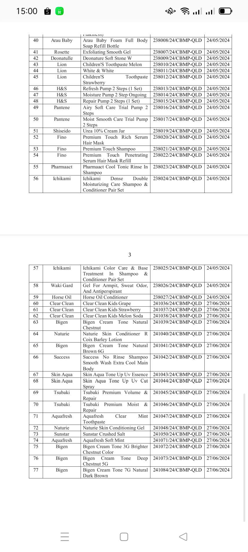 Bên cạnh đó, Cục Quản lý Dược ra quyết định đình chỉ lưu hành, thu hồi trên toàn quốc đối với 77 sản phẩm của Công ty TNHH Ucanrely đứng tên công bố và chịu trách nhiệm đưa sản phẩm ra thị trường. Các sản phẩm mỹ phẩm này gồm nhiều loại khác nhau, như: các loại dầu gội, dầu xả, toner, sữa rửa mặt, kem dưỡng da, kem chống nắng, sữa dưỡng thể, dưỡng da tay, kem đánh răng, nhiều sản phẩm chăm sóc da mặt... với các thương hiệu nổi tiếng như Ichikami, Hatomugi, Shiseido, Pantene, Softymo, Rosette, Fino, Tsubaki, Skin Aqua, Arau Baby, Aquafresh…