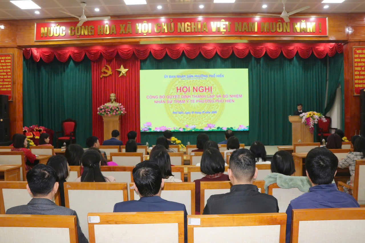 Sáng ngày 10/01/2026, UBND Phường Phố hiến đã tổ chức hội nghị Công bố Quyết định thành lập Trạm Y tế phường Phổ Hiến trên cơ sở hợp nhất 05 Trạm Y tế xã, phường cũ gồm: Trung Nghĩa, An Tảo, Hiến Nam, Minh Khai và Liên Phương.
