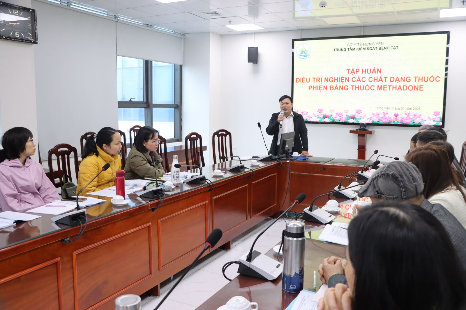 Từ ngày 26 đến hết ngày 30/01/2026, Trung tâm Kiểm soát bệnh tật Hưng Yên tổ chức lớp tập huấn điều trị nghiện các chất dạng thuốc phiện bằng thuốc Methadone. Tham gia lớp tập huấn có 23 học viên là các bác sĩ, dược sĩ và điều dưỡng đến từ 04 bệnh viện đa khoa trong tỉnh gồm: Thái Thụy, Quỳnh Phụ, Yên Mỹ và Tiền Hải.