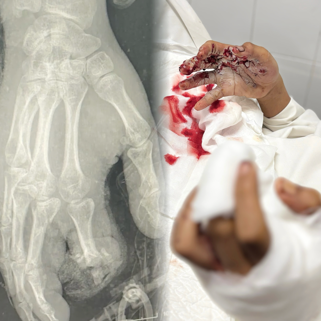 Một bệnh nhân là em nhỏ tuổi (15 tuổi, Thái Nguyên) trong tình trạng đa chấn thương đặc biệt nghiêm trọng do tai nạn pháo nổ. Khi nhập viện, bệnh nhân bị dập nát cẳng bàn tay 2 bên, bỏng vùng mặt và cẳng chân, thành trước ngực, đe dọa tính mạng và sẽ để lại di chứng nặng nề cho bệnh nhân.